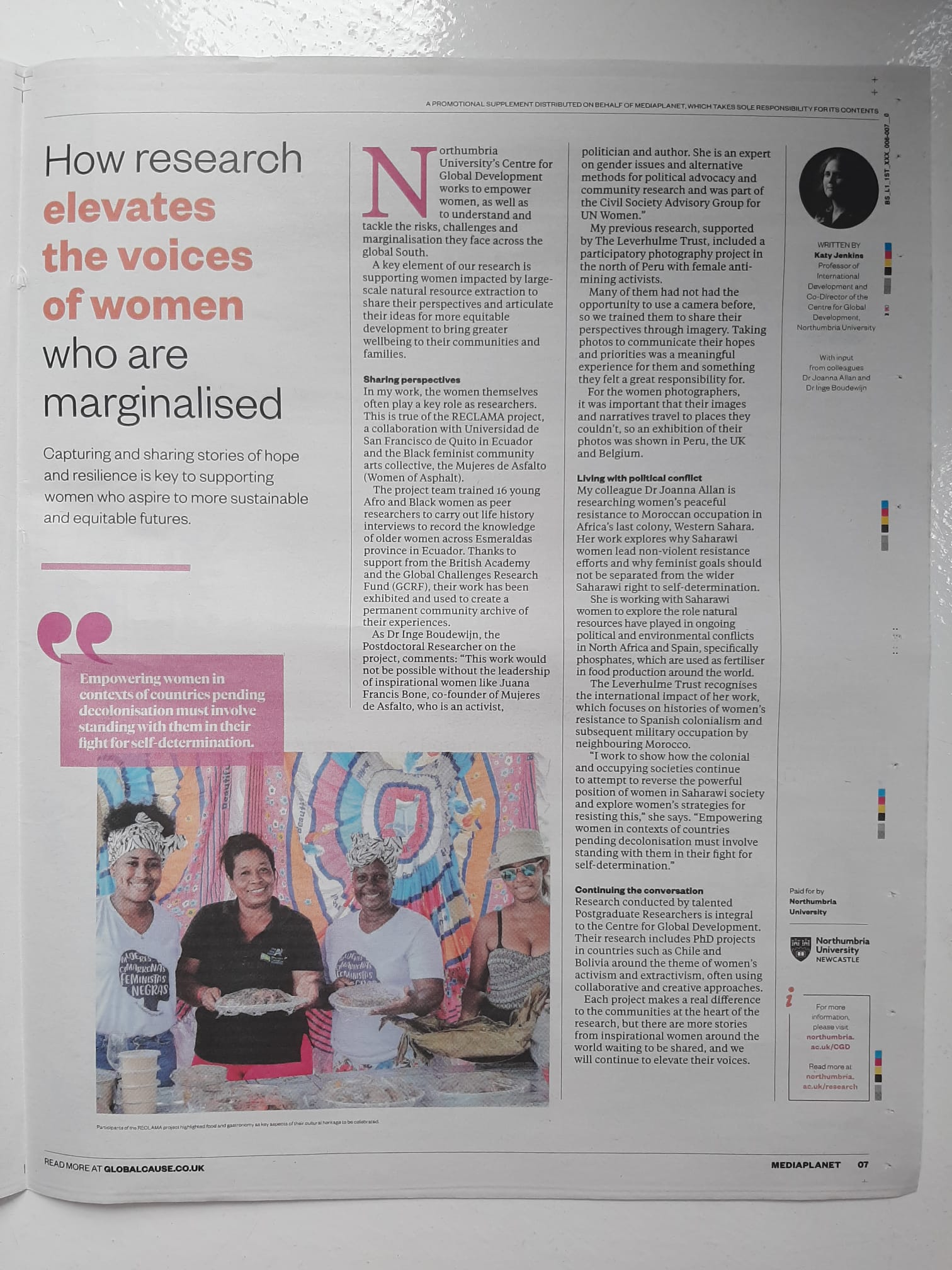 How research elevates the voices of women who are marginalised. (Solo en ingles). Por Katy Jenkins para Global Cause, 2023. Haga clic aquí para obtener una copia escaneada del artículo en el periódico The Guardian.